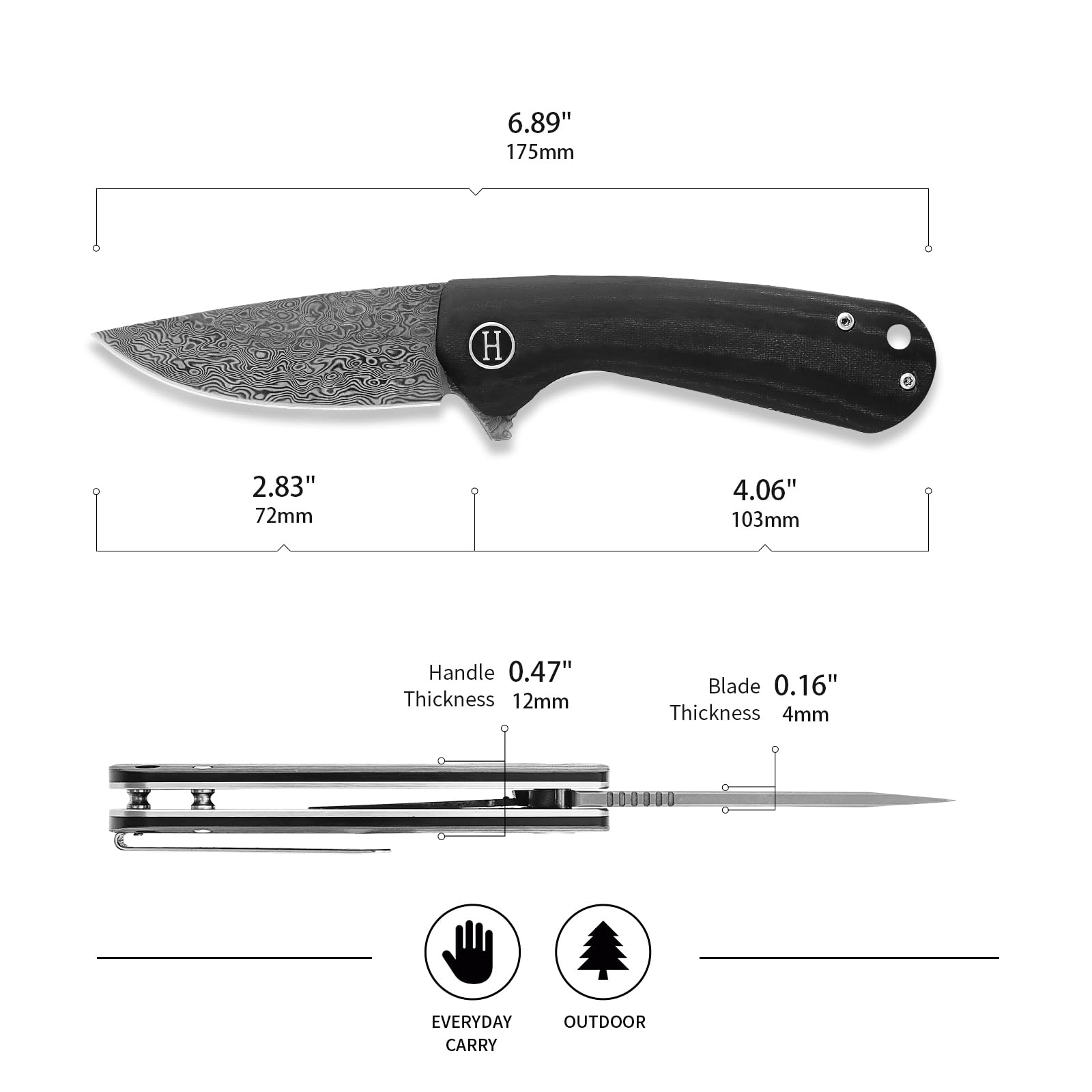 ✅ MAX CONTROL IN USE DUE TO THE SMART DESIGN HANDLE: The G10 pocket knife handle is enhanced to provide Anti-slip & easy grip, it is designed for functionality.