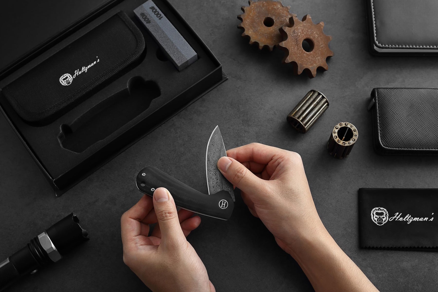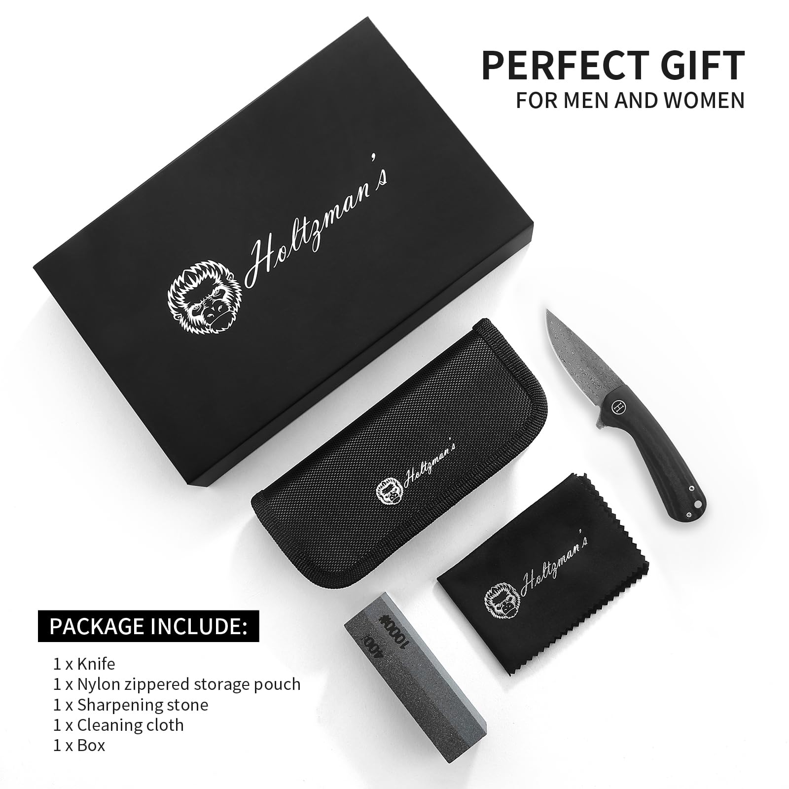 ✅ GET YOUR HANDS ON A COMPLETE POCKET KNIFE KIT: The sharpening stone will make sure your blade is always razor sharp and the carrying case will keep your EDC knife safe and always at hand.