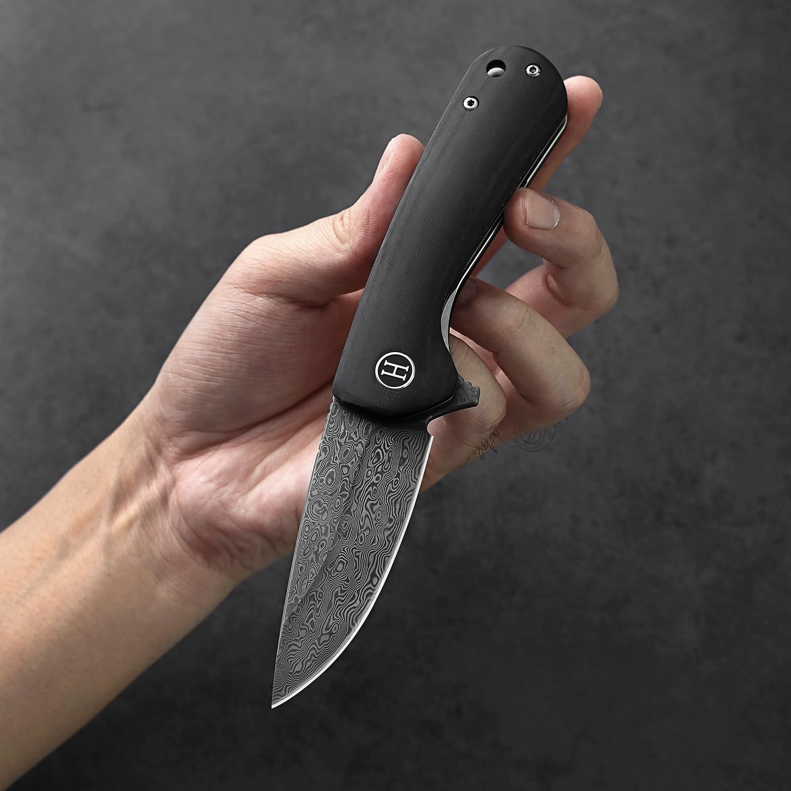 Peasant Damascus Steel Pocket Knife with G10 Tactical Handle and Gift Box - Ideal for Everyday Carry - Holtzman's Gorilla Survival